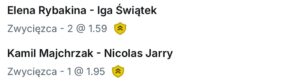 Dzisiejszy kupon budujemy na występach naszych reprezentantów – Igi Świątek i Kamila Majchrzaka. Oboje stoją przed ważnymi wyzwaniami, ale statystyki oraz styl gry sugerują, że mogą zakończyć swoje mecze na plus.